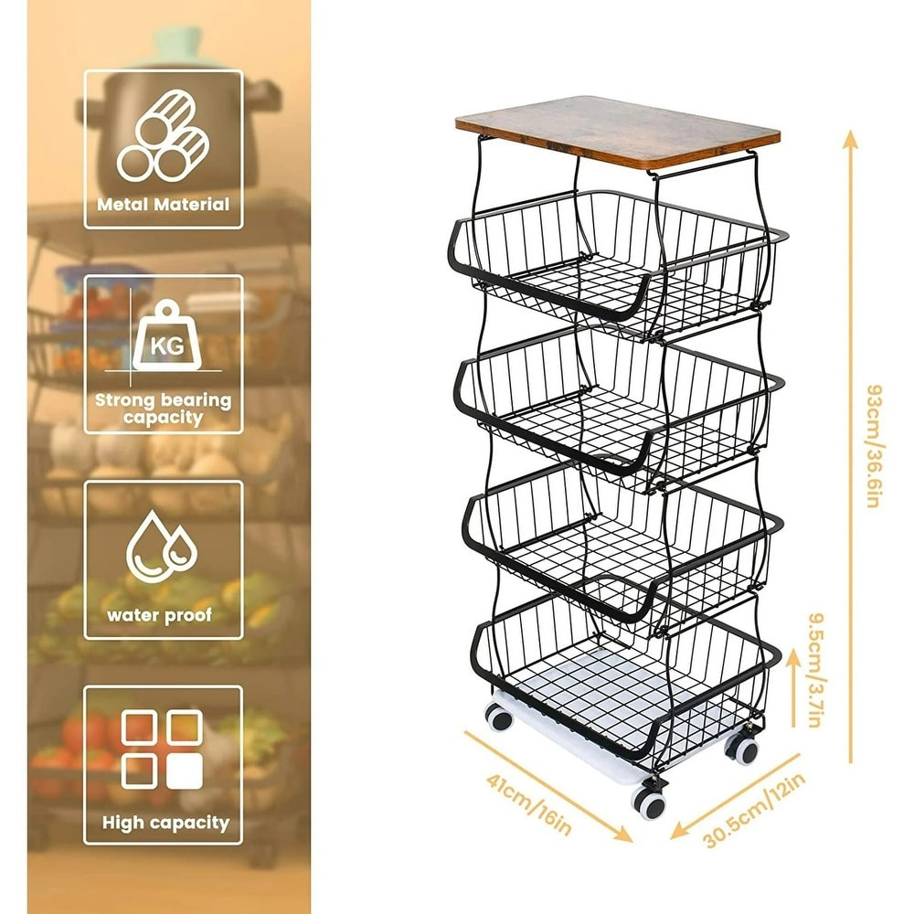 5 6 Tier Fruit Basket Rack Stackable Wire Basket Cart