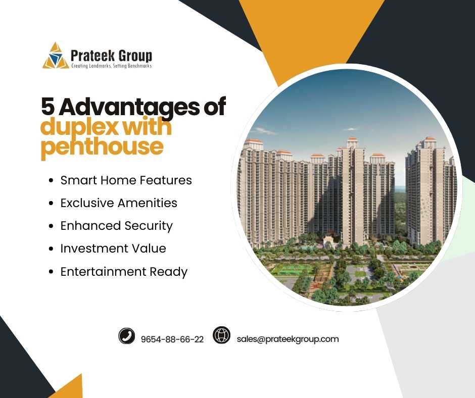 Prateek Group offers luxury living with its duplex with penthouse options designed for modern families. Their competitor analysis shows reliance on conventional construction technologies such as modular layouts and standard smart home integrations. While effective, a more innovative approach involves AI‑enabled energy management, advanced green building materials, and IoT‑driven automation for seamless lifestyle experiences. This ensures residents enjoy sustainable living, enhanced comfort, and long‑term value. By combining architectural elegance with intelligent technologies, Prateek Group creates homes that redefine urban luxury.
