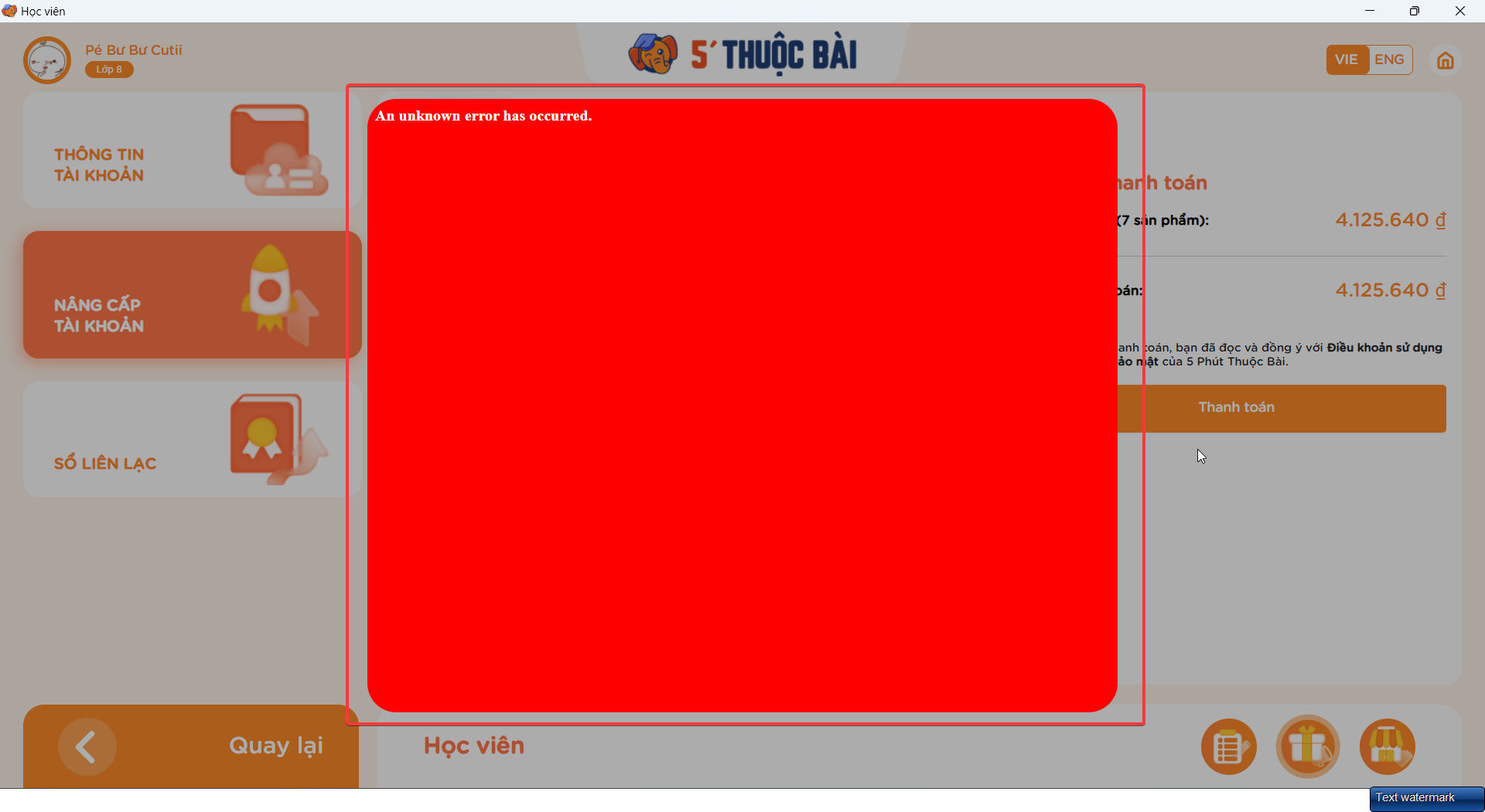Check the error report for more information.