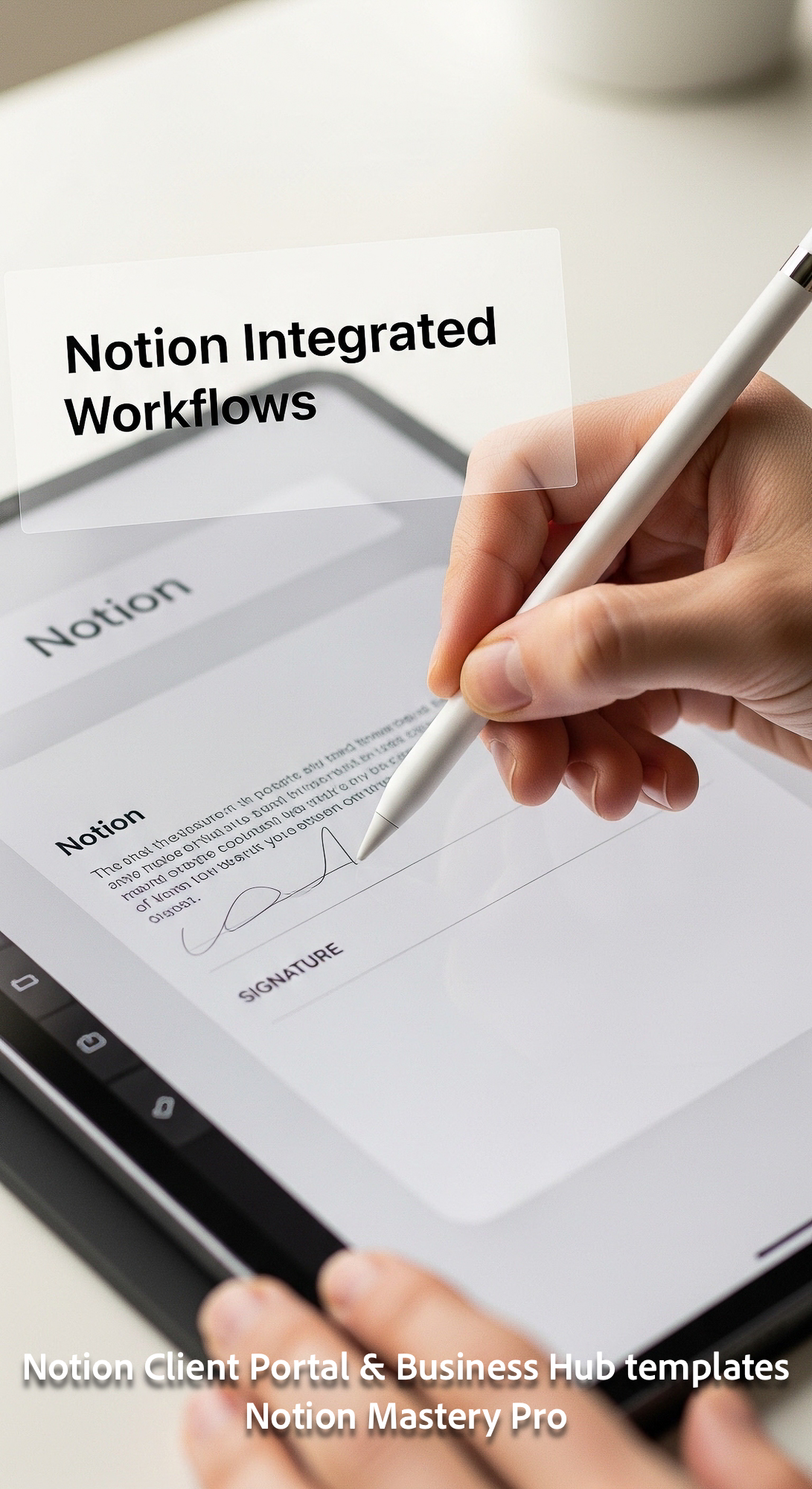 65 Closeup of a hand signing a digital document on an iPad with a Notion watermark Overlay Notion In
