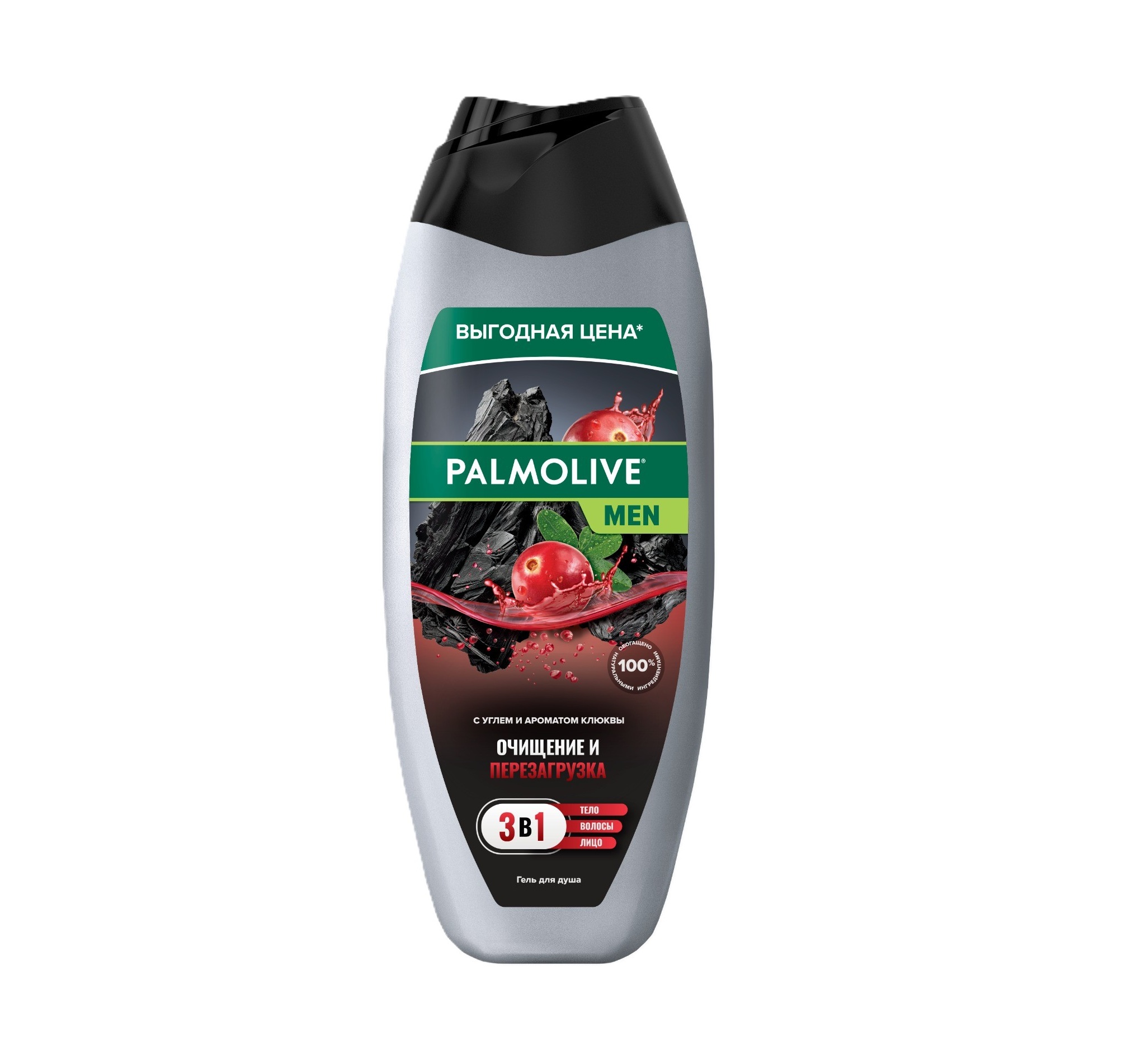 8718951662889 ГЕЛЬ ДДУША PALMOLIVE MEN ОЧИЩЕНИЕ И ПЕРЕЗАГРУЗКА С УГЛЕМ И АРОМАТОМ КЛЮКВЫ 450МЛ