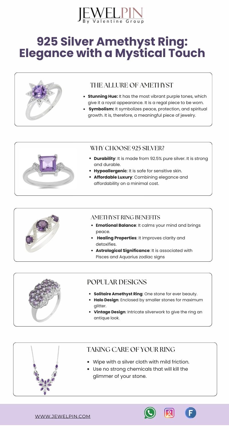 Enhance the look of your store by making it more appealing with the 925 Silver Amethyst Ring from JewelPin, a trusted source of gemstone jewellery. Radiate elegance and take in the tranquillity of its spirituality!