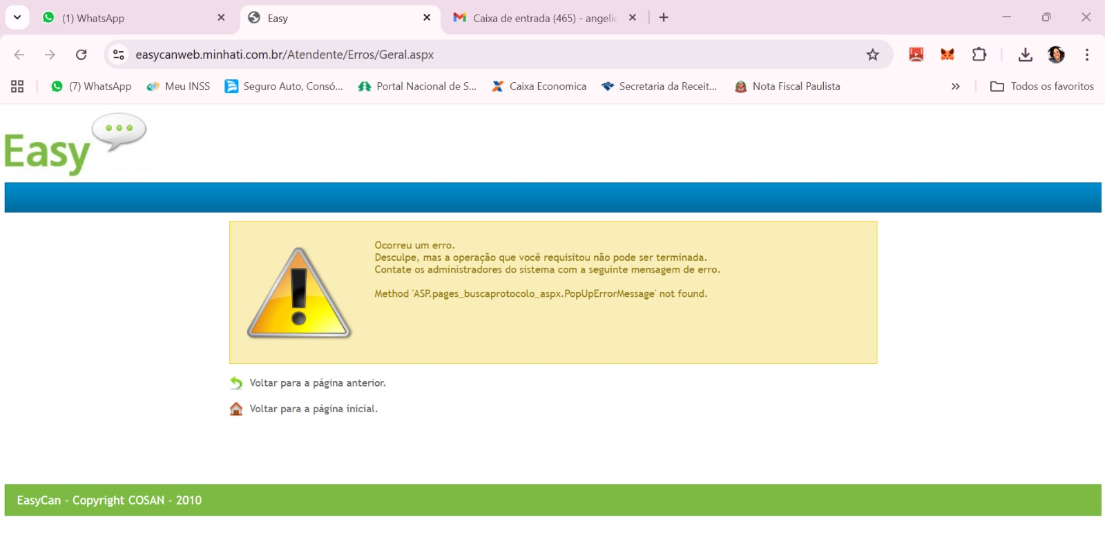Some errors have occured and the system couldn't process your request.