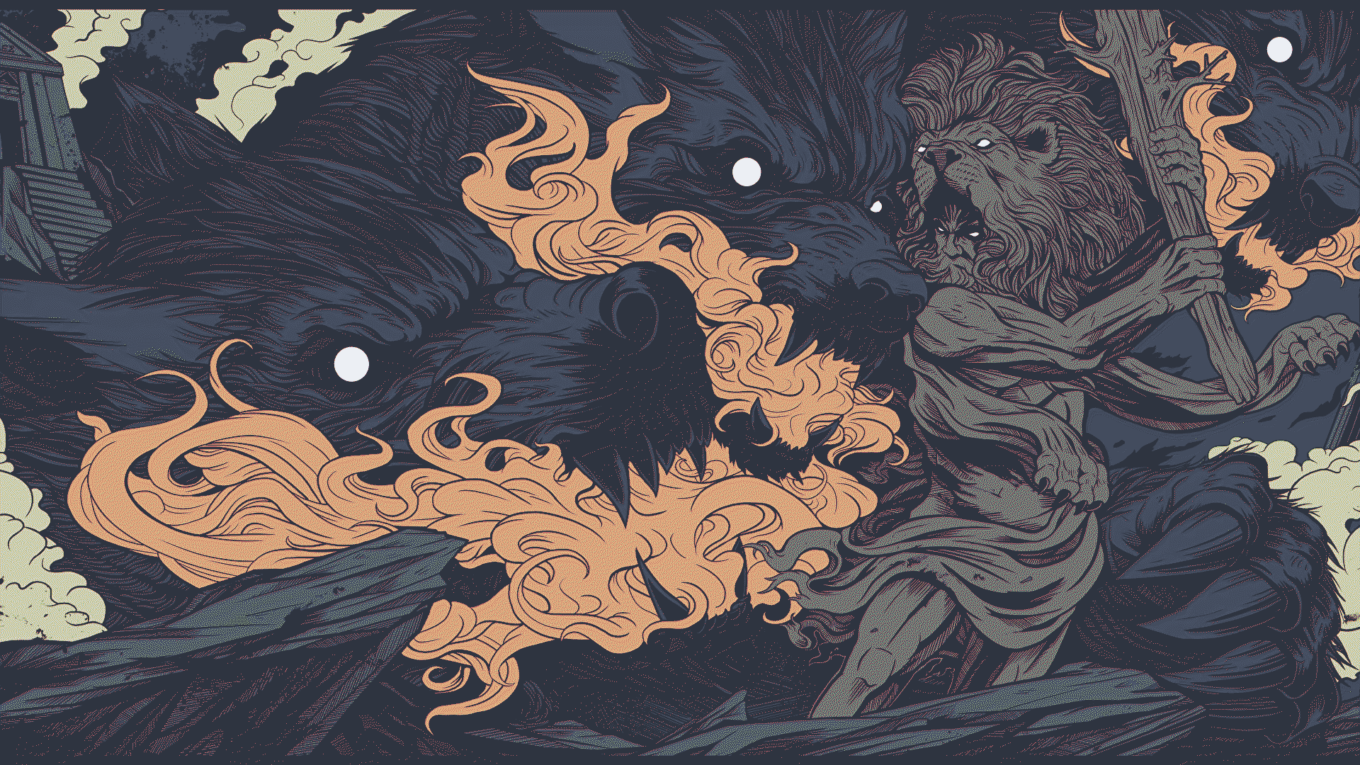 a drawing of a wolf and a lion
