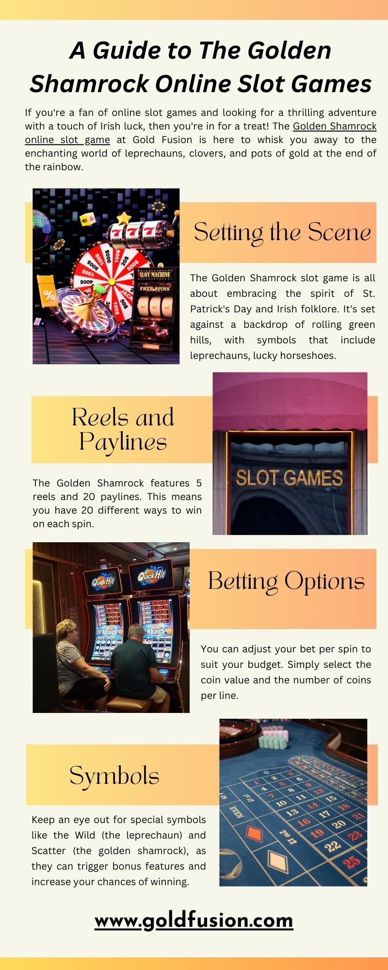 If you're a fan of online slot games and looking for a thrilling adventure with a touch of Irish luck, then you're in for a treat! The Golden Shamrock online slot game at Gold Fusion is here to whisk you away to the enchanting world of leprechauns, clovers, and pots of gold at the end of the rainbow.https://goldfusion422.blogspot.com/2023/10/a-guide-to-golden-shamrock-online-slot.html