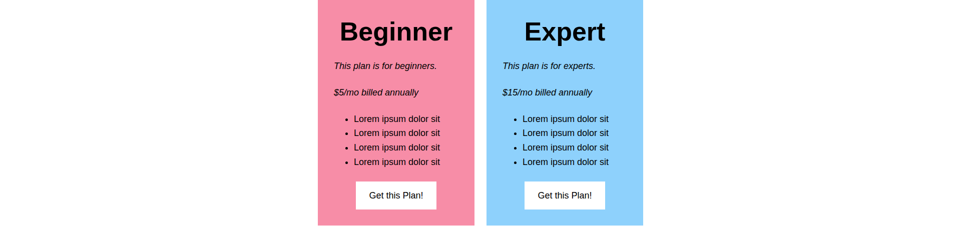 a pricing plan pattern with headings paragraphs lists and buttons