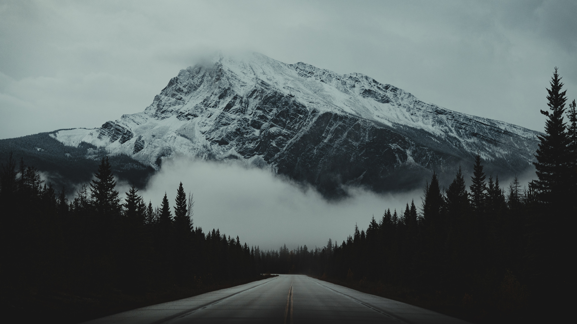 a road with trees and a mountain in the background