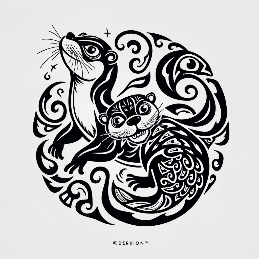 A stunning Northwest Coast Formline art piece featuring an otter The design is intricate and traditi