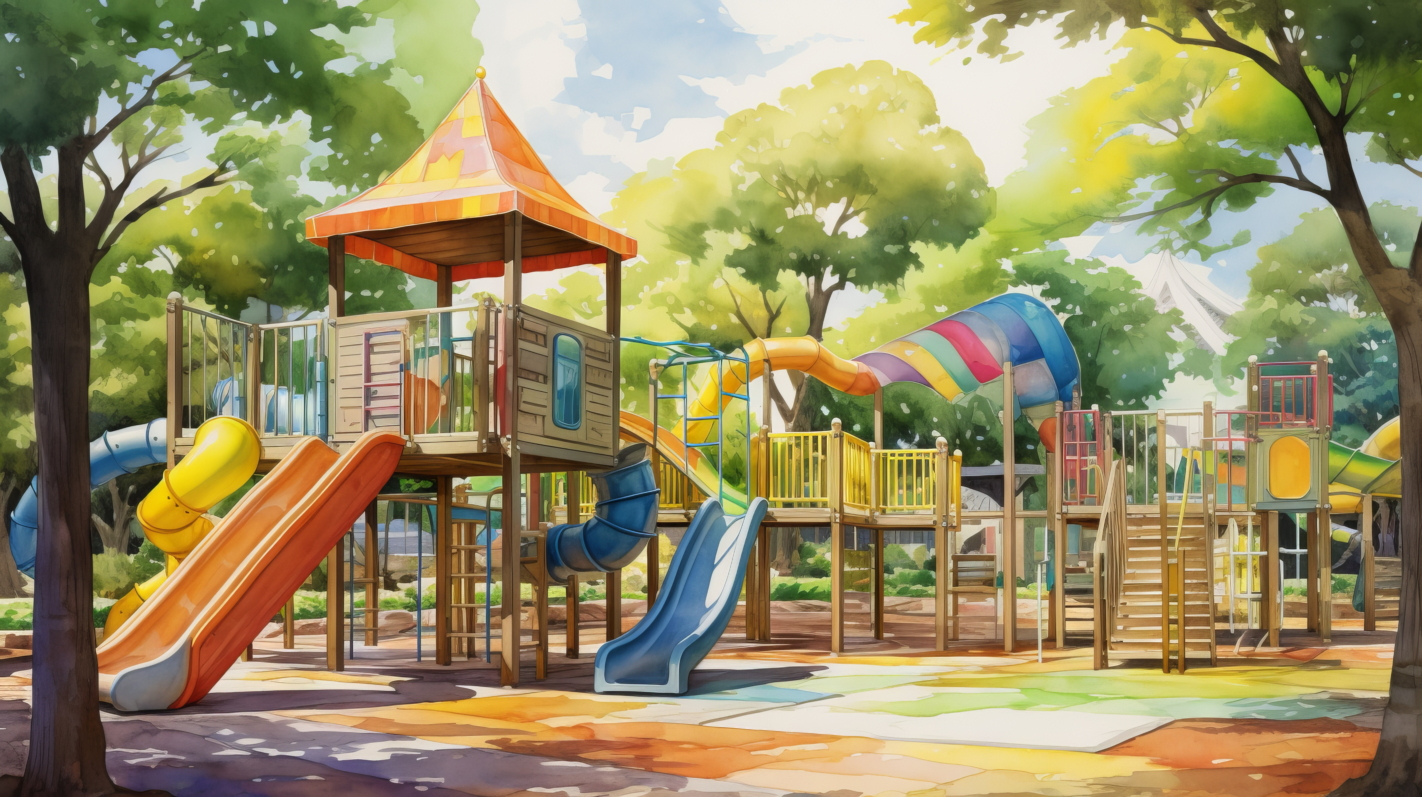 A watercolor scene of a bright and colorful playground 00080 03