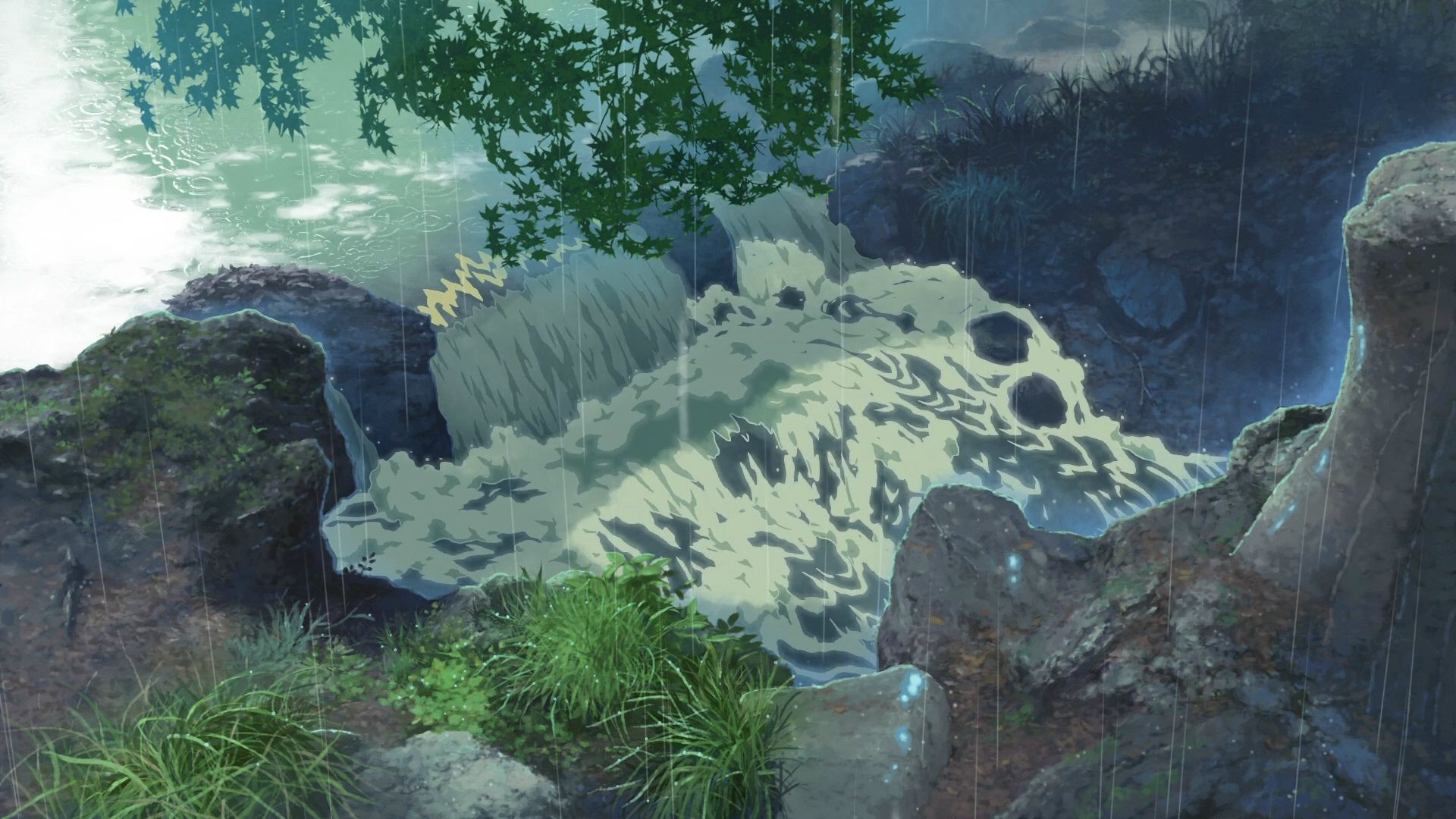 a waterfall in the rain
