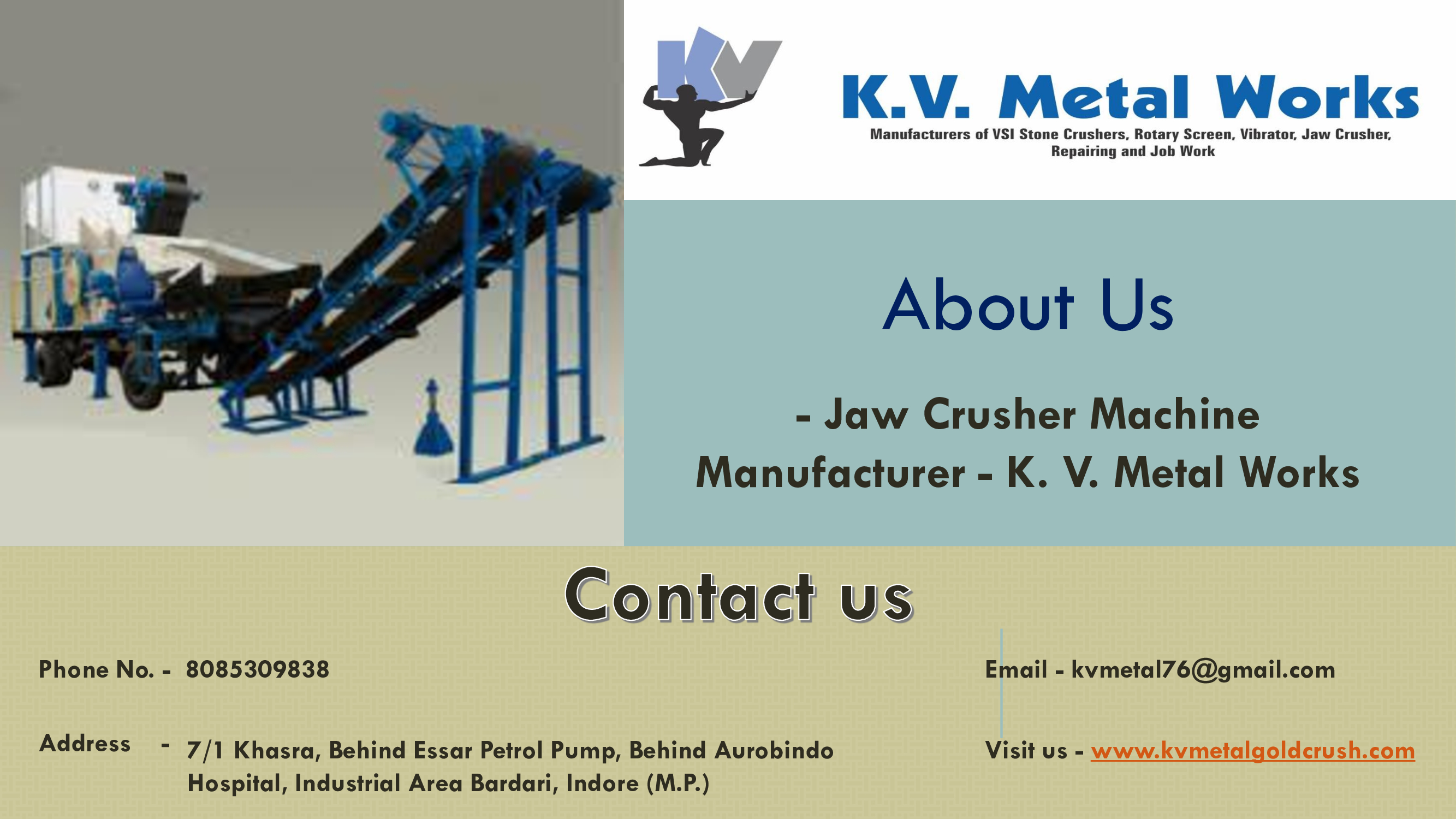 About Us Jaw Crusher Machine Manufacturer K. V. Metal Works