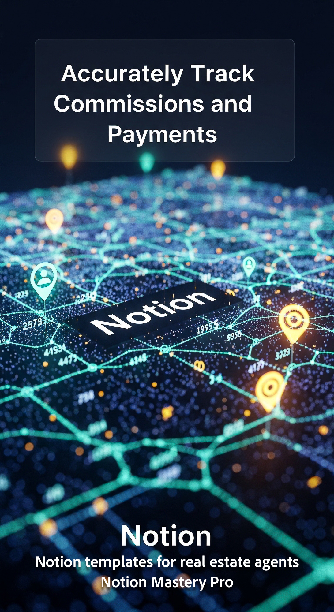 Abstract visualization of commission payment numbers connected to transaction milestones within a gl