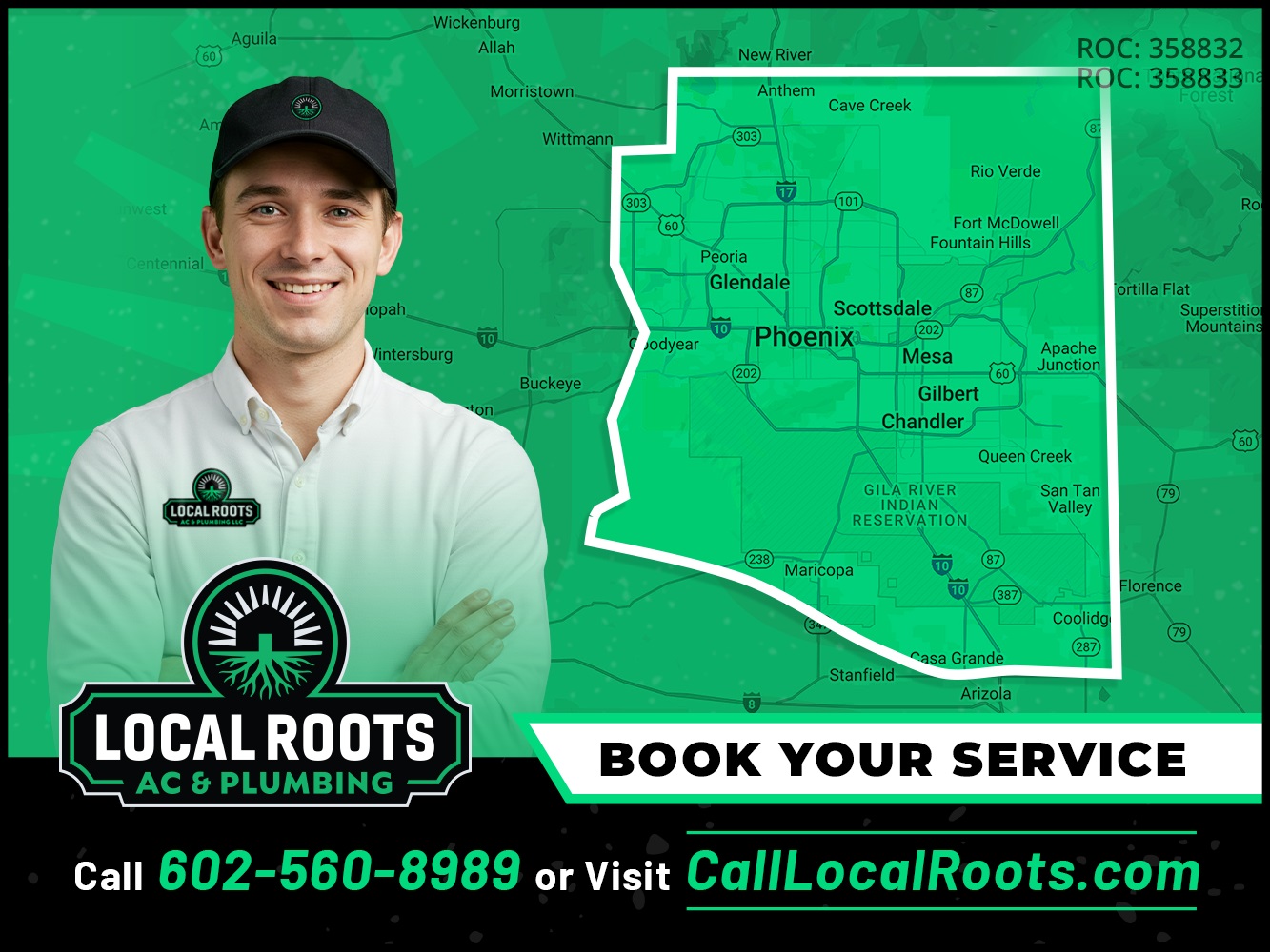 Trusted and family-owned, Local Roots AC and Plumbing serves Phoenix, Scottsdale, Paradise Valley, Arcadia & beyond with expert AC and plumbing services. Same-day service, no hidden fees, and fair pricing. Call today for your AC Tune-Up or Drain Cleaning. Reliable service done right the first time!