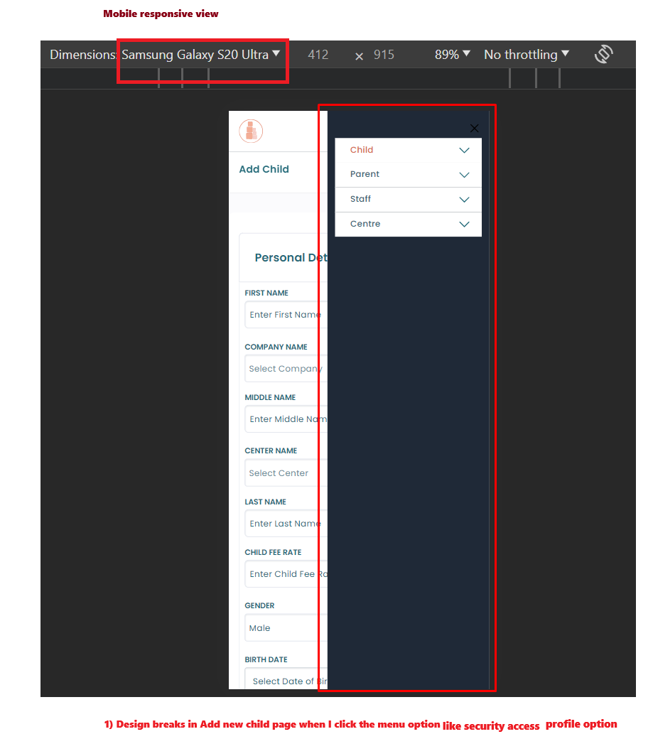 Add new child Menu Design breaks
