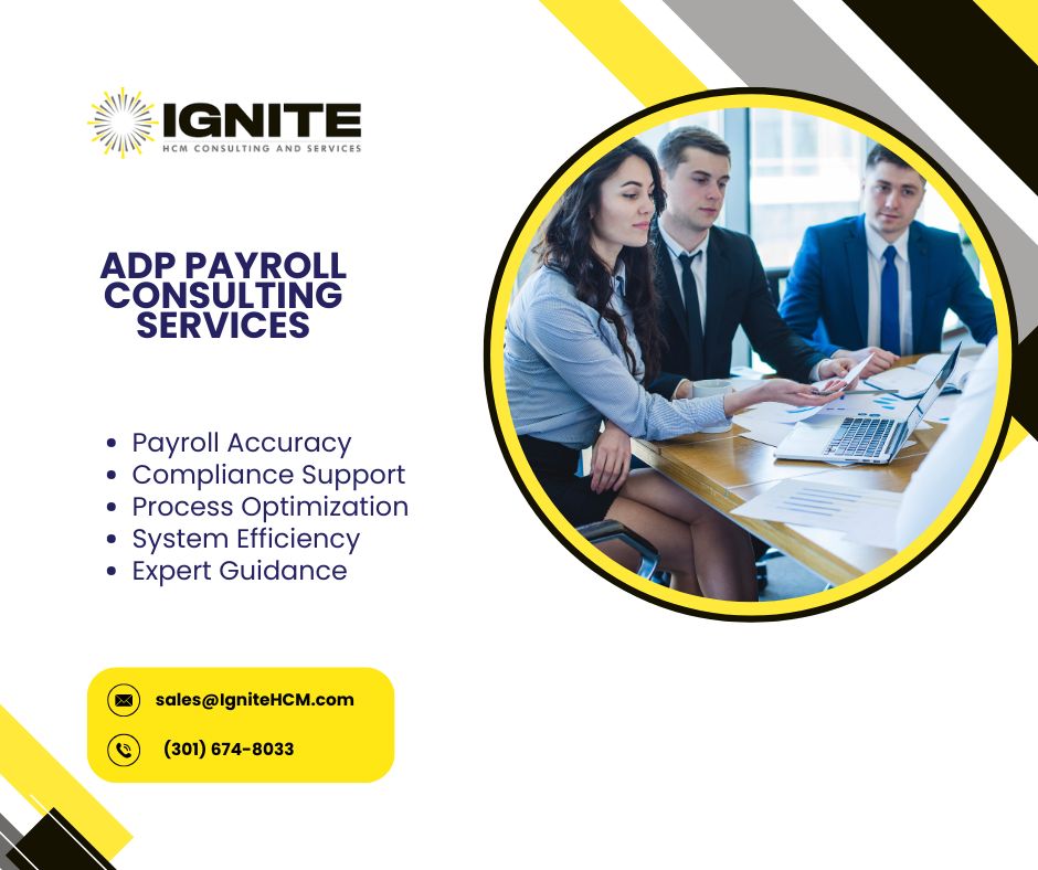 Ignite HCM offers specialized ADP Payroll Consulting Services designed to help organizations maximize the value of their ADP HR and payroll systems. Many companies only use a small portion of their Human Capital Management (HCM) platform, which can lead to inefficiencies, missed automation opportunities, and unnecessary administrative workload. Ignite HCM bridges this gap by providing experienced consultants who understand ADP systems in depth and help businesses optimize their payroll and HR processes. Their services include system implementation support, payroll processing assistance, workflow optimization, compliance guidance, and ongoing consulting through solutions like Ignite PRODUCTIVITY™. With decades of combined ADP experience, Ignite HCM consultants work closely with clients to streamline operations, activate unused system features, and improve overall payroll accuracy and efficiency. Businesses benefit from tailored strategies, hands-on training, and proactive support that ensures payroll runs smoothly and employees are paid correctly and on time. These consulting services are ideal for organizations looking to reduce payroll complexity, improve productivity, and increase their return on investment in ADP technology. Whether your company needs implementation help, system optimization, or reliable payroll expertise, Ignite HCM delivers practical solutions backed by veteran ADP professionals.