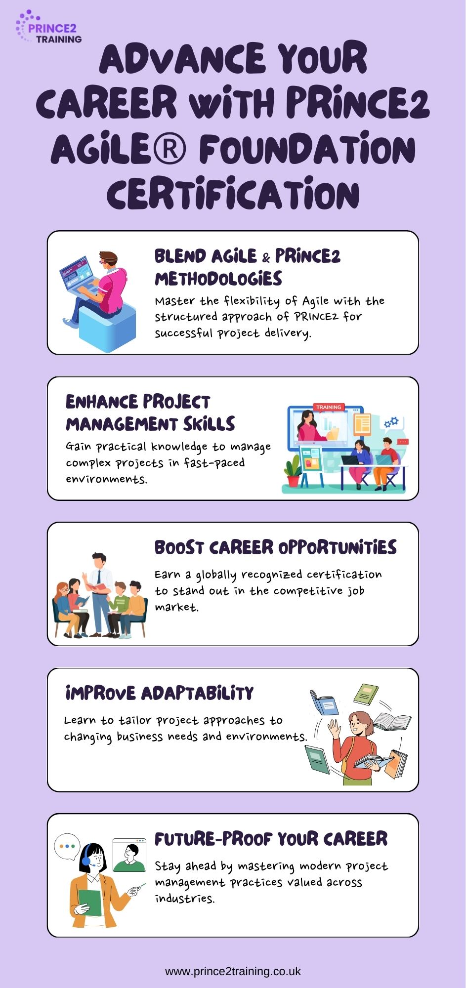Unlock new career opportunities with the PRINCE2 Agile® Foundation Certification. This course combines Agile’s adaptability with PRINCE2’s robust methodology, equipping you with essential skills to manage projects effectively. Ideal for project managers and professionals seeking to deliver high-value projects in diverse environments. Gain a globally recognized qualification and become a versatile project leader. Enroll today to advance your career and master Agile project management methodologies!