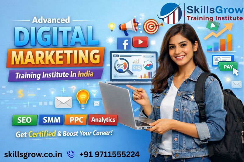 An Advanced Digital Marketing Training Institute in India supports learners to possess contemporary, practical skills that are industry ready in the rapidly changing digital environment. SkillsGrow provides training that is focused on a career in SEO, paid advertising, content strategy, analytics, AI, powered tools, and live projects. Through such a practical approach, the students as well as the professionals build their proficiency, get real, world experience.