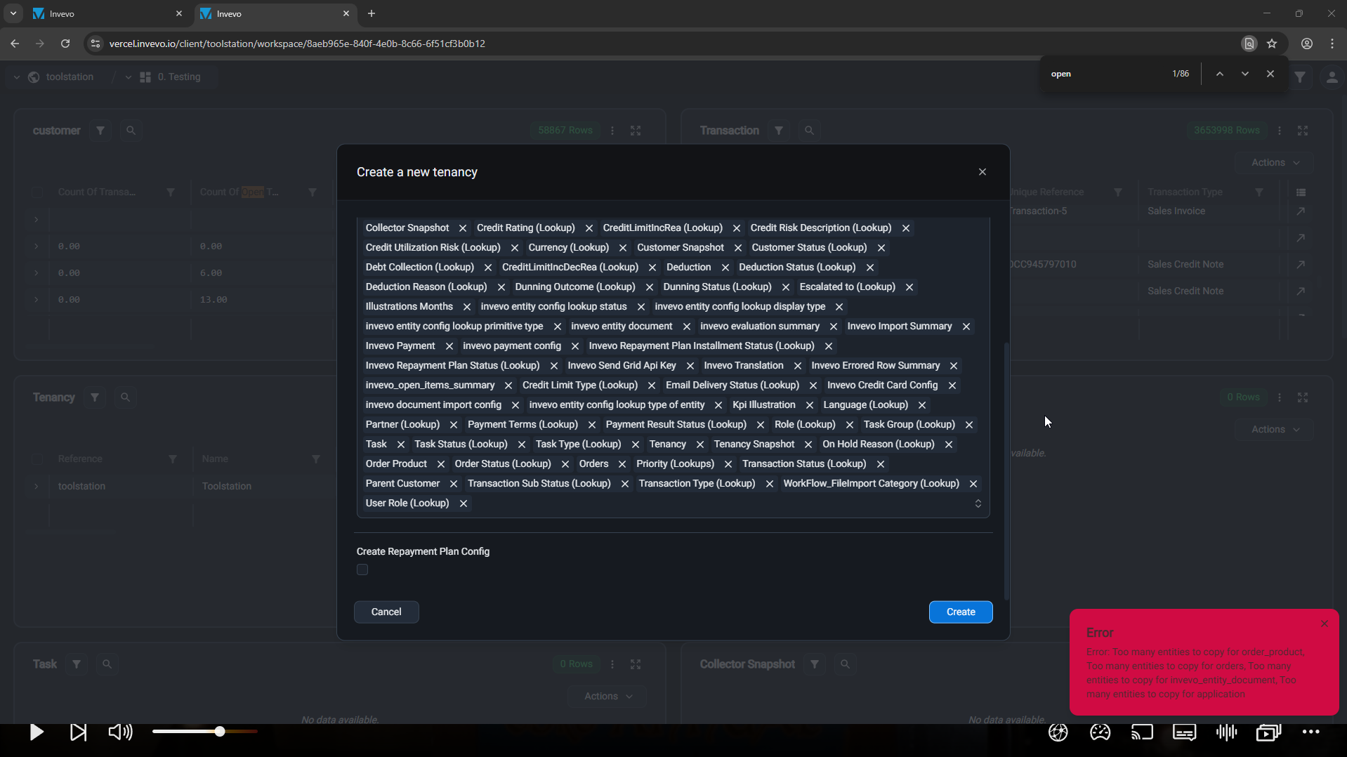 Check the error report for more information.