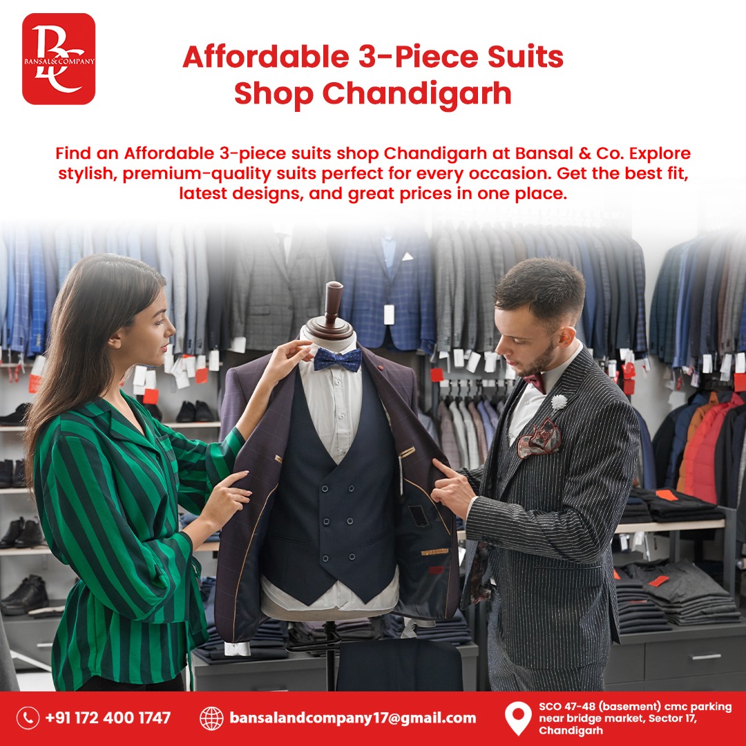 Find an Affordable 3-piece suits shop Chandigarh at Bansal & Co. Explore stylish, premium-quality suits perfect for every occasion. Get the best fit, latest designs, and great prices in one place.