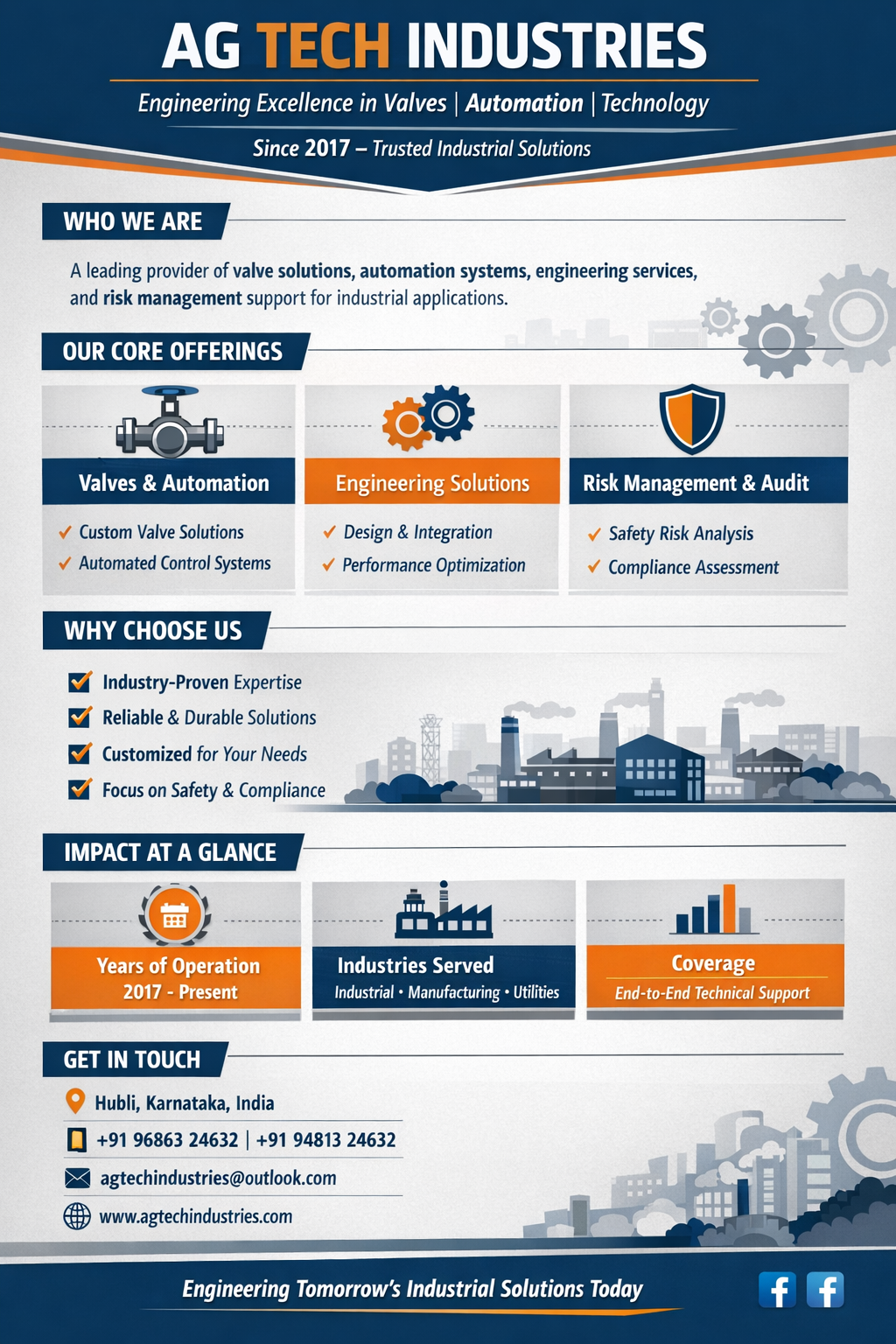 A G Tech Industries is a trusted valves company offering high-quality industrial valves and cutting-edge valve automation solutions. With strong expertise in modern valve technologies, the company serves diverse valve industries with reliable, efficient, and durable valve systems.