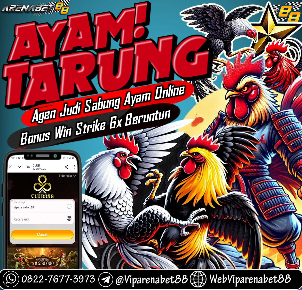 Ayo rasakan taruhan sabung ayam bersama ARENABET88 dan rasakan bonus bonus winstrike sabung ayamnya.