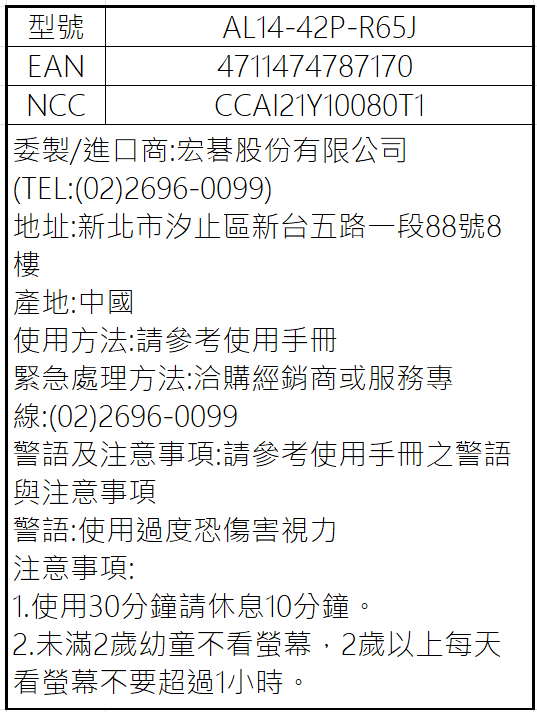 AL14 42P R65J背標
