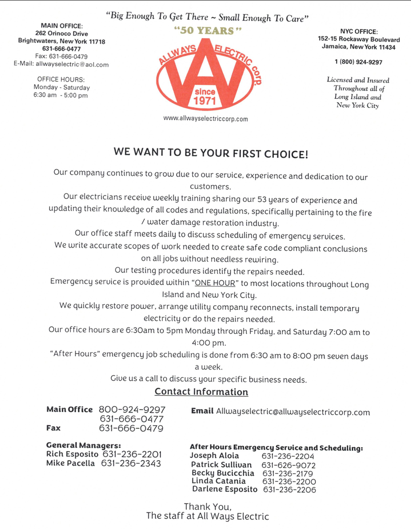 AllWays Electric Corp. offers top-notch commercial electric services on Long Island. Our knowledgeable experts provide dependable business solutions. Check out our commercial electrical services right now.