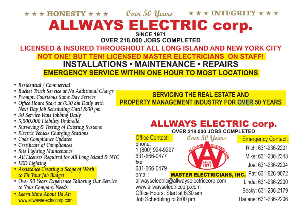 Electric Repair Service Long Island: Having problems with the electricity? On Long Island, NY, our team of experts provides emergency electrician repair services around-the-clock. For timely and dependable solutions, rely on AllWays Electric Corp. Reach out to us right now for prompt support! #ElectricRepairServiceLongIsland https://allwayselectriccorp.com
