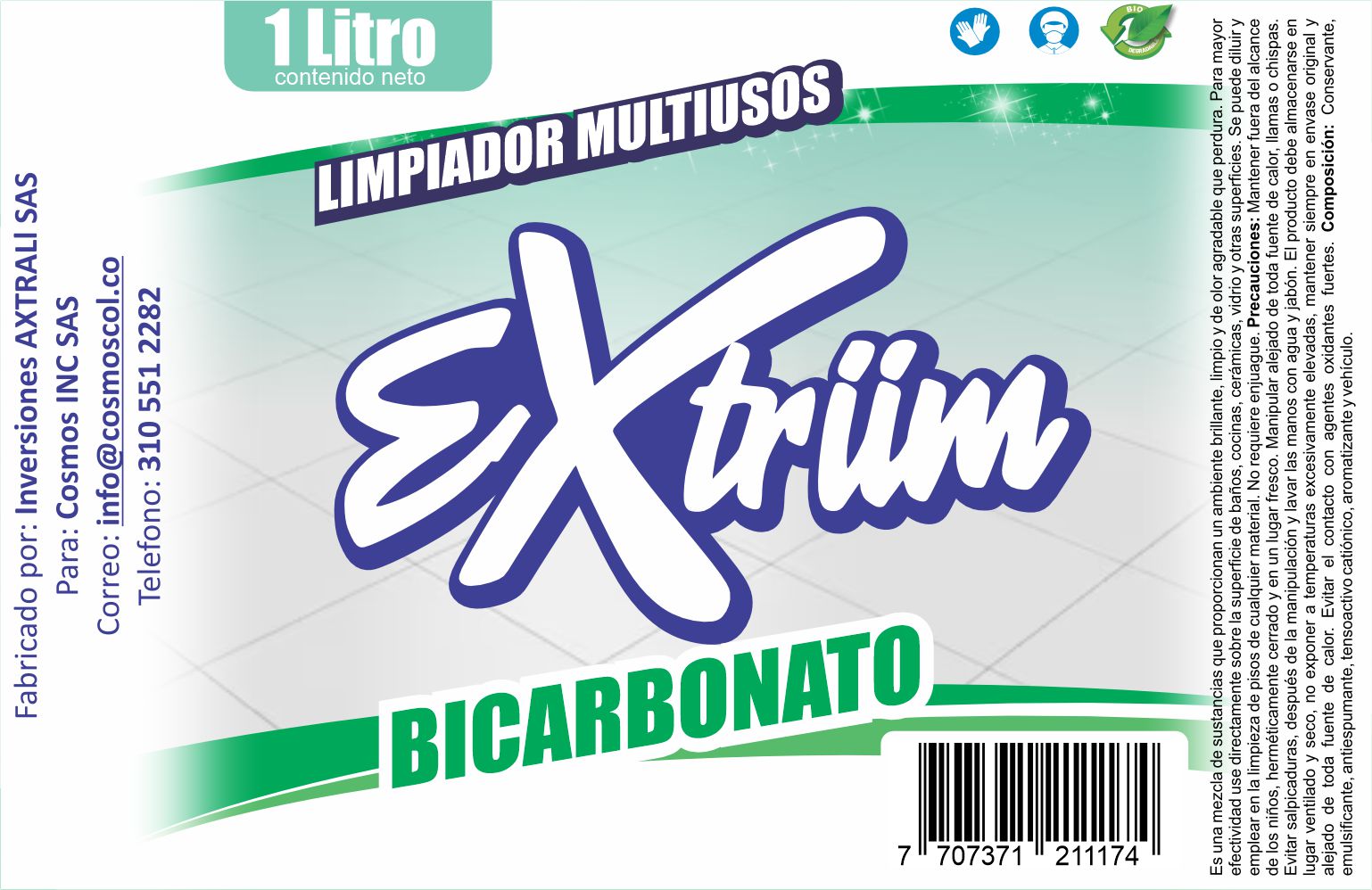 AMBIENTADOR LIMPIADOR MULTIUSOS EXTRIIM BICARBONATO LIMON 1 LITRO