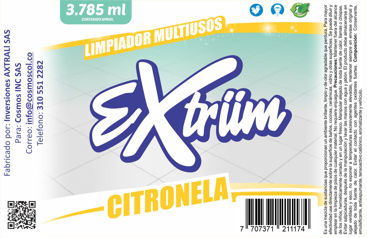 AMBIENTADOR LIMPIADOR MULTIUSOS EXTRIIM CITRONELA 3785 ML