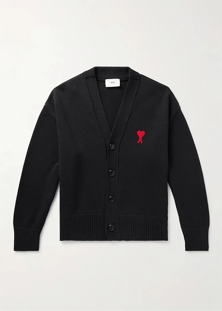 Ami Paris Logo Embroidered Cotton and Merino Wool Blend Cardigan (1) (1)