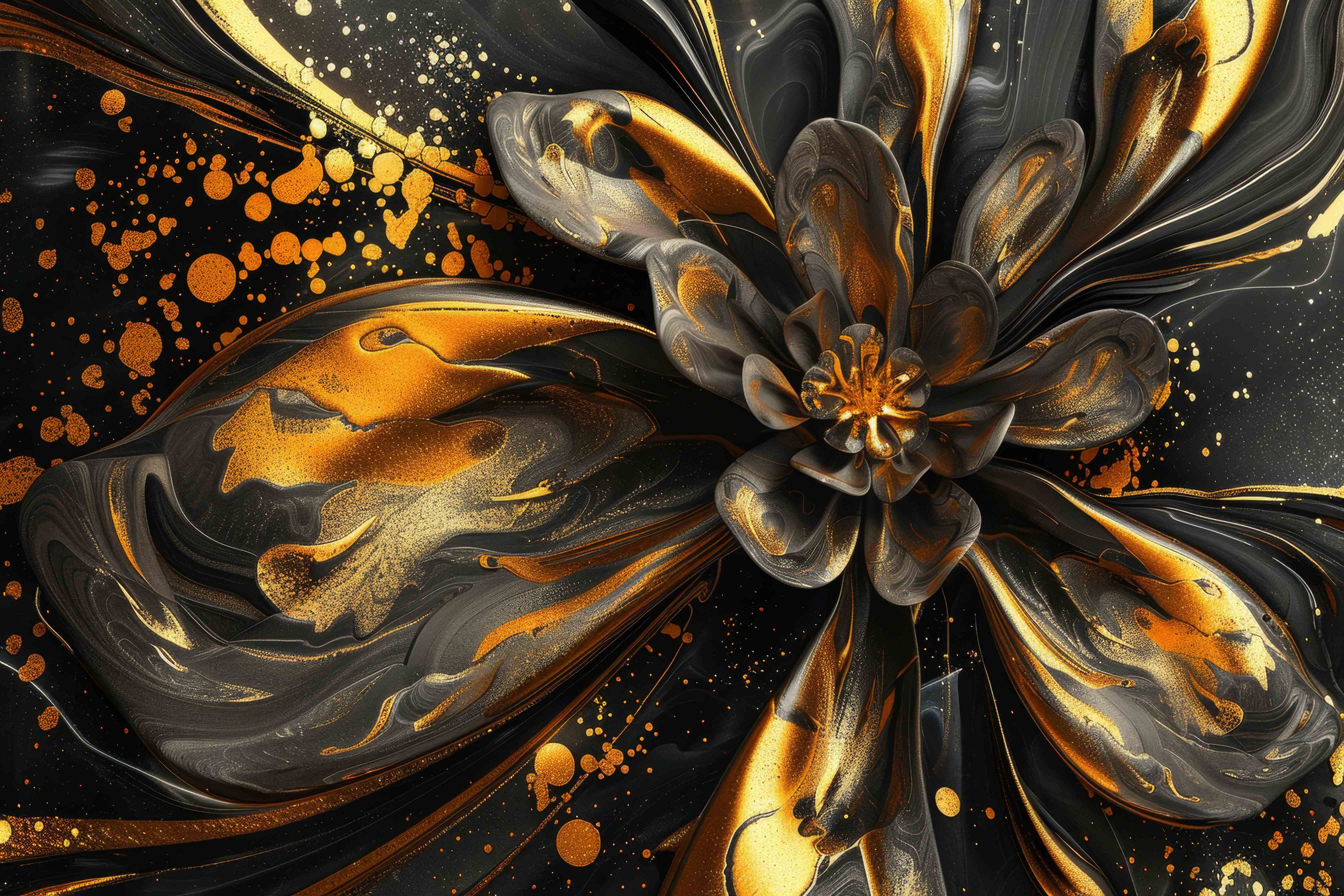 An elegant floral arrangement combines dark tones with shimmering gold accents, creating a captivati