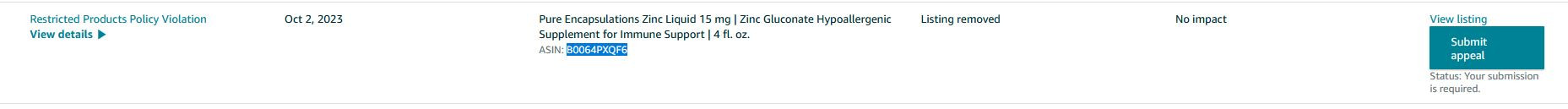 Appeal Path option available for ASIN B0064PXQF6