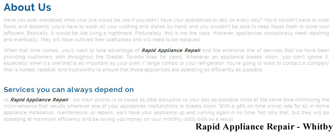 Rapid Appliance Repair 209 Dundas St E #301 Whitby, ON L1N 7H8 (289) 278-1358 https://rapidappliancerepair.ca/whitby.html