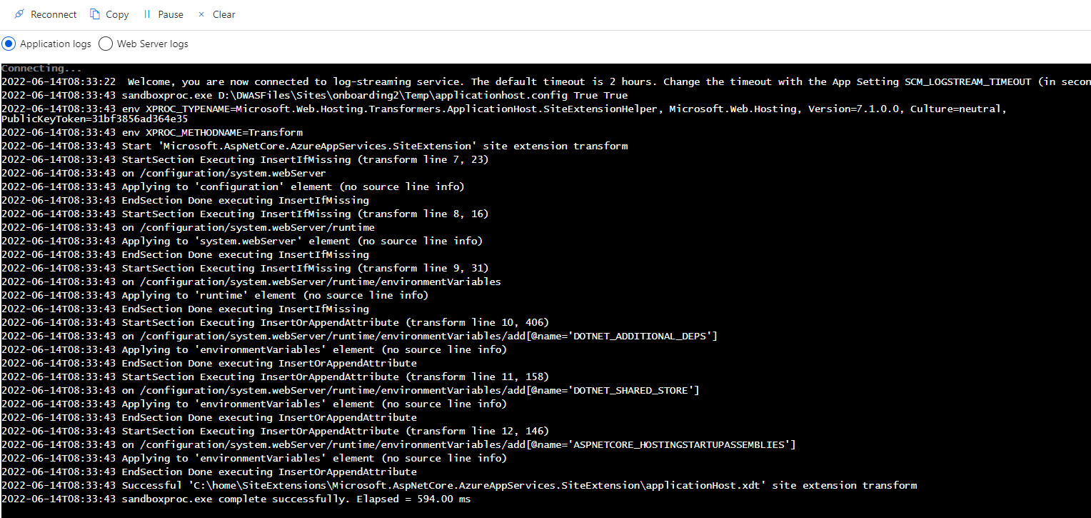 application logs init