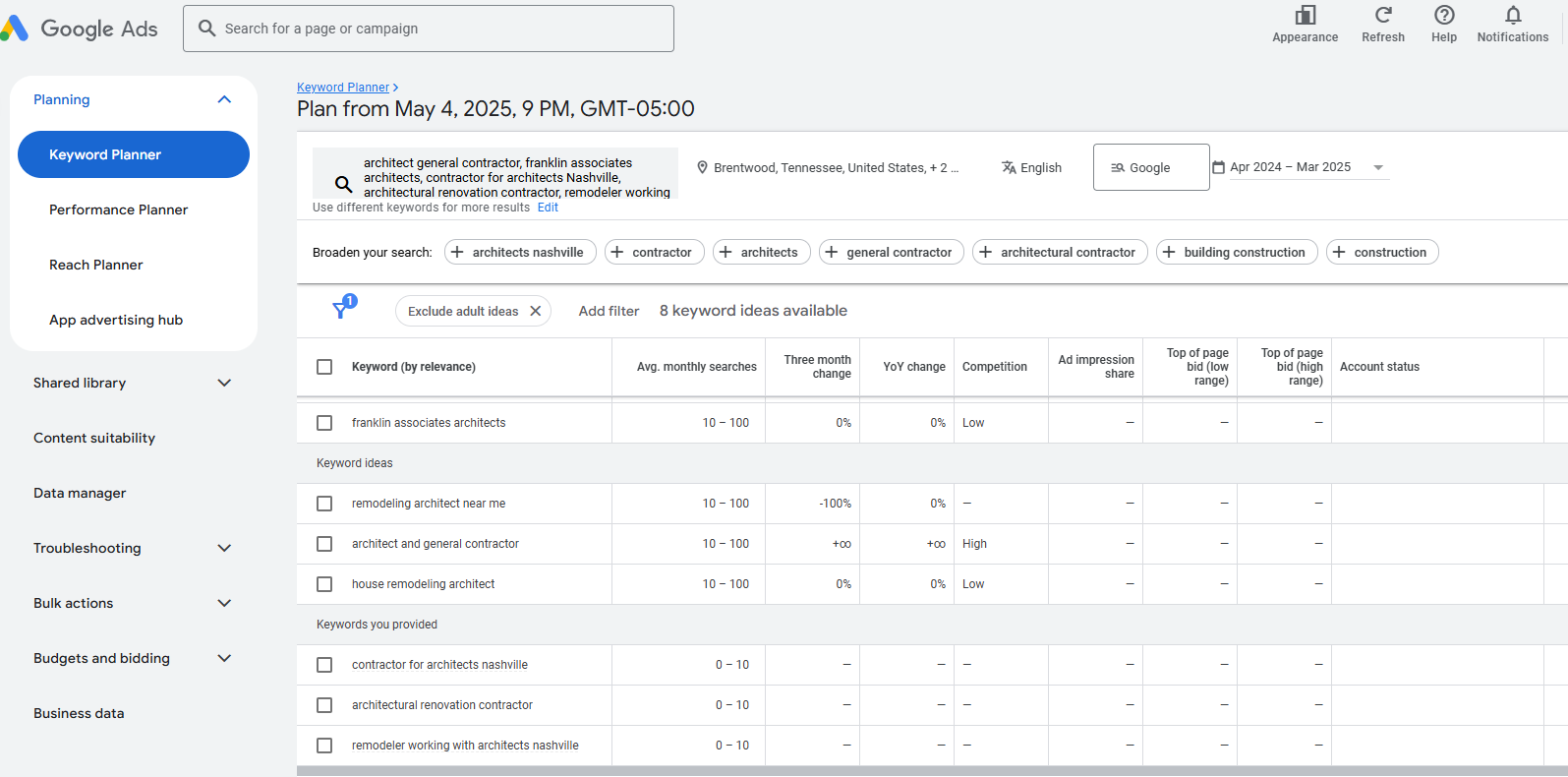 Architect + Keyword Planner