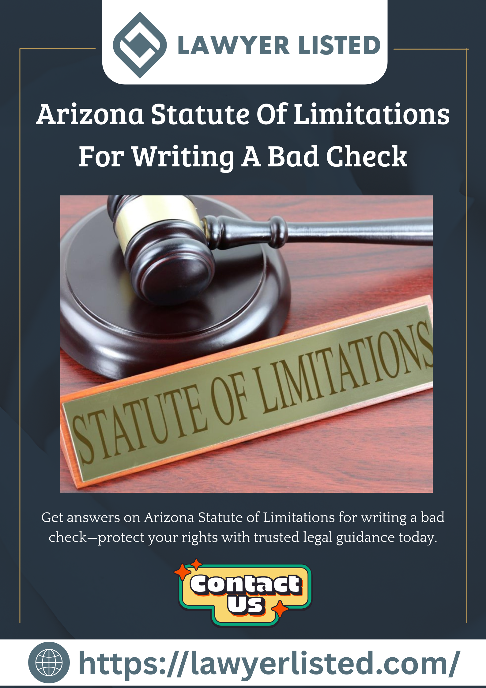Looking for answers about the Arizona Statute of Limitations for writing a bad check? Lawyer Listed, LLC connects you with experienced attorneys who know the laws and how they affect your case. Protect your rights, avoid costly mistakes, and get clear legal guidance fast. Find trusted lawyers today and take control of your situation! https://lawyerlisted.com/