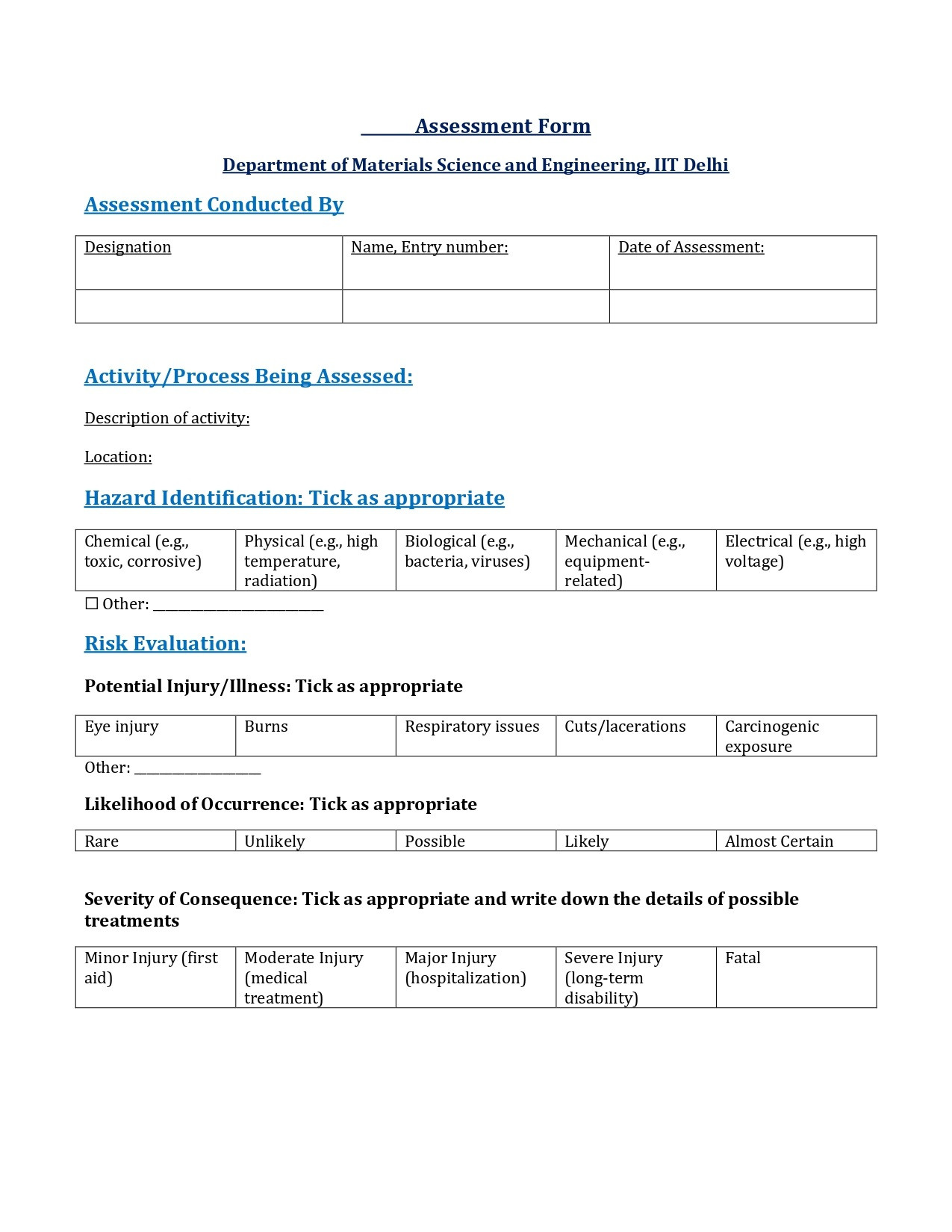 Assesment Form