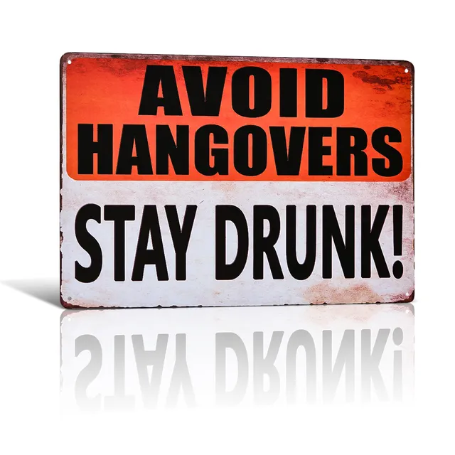 AVOID HANGOVERS SATY DRUNK Shabby chic Metal Tin signs Public Place Lounge Bar Coffee Cafe Wall.jpg