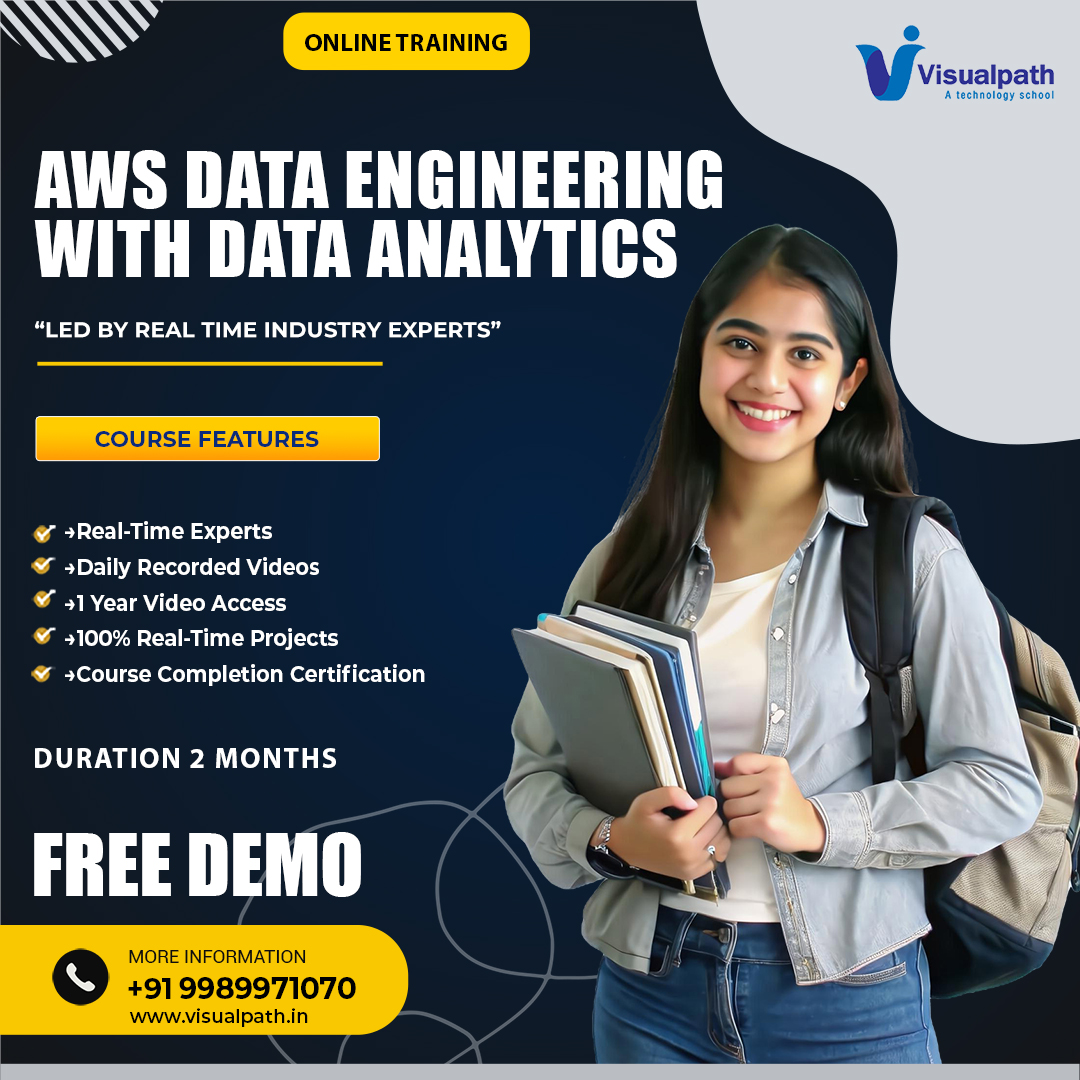 Visualpath provides the best AWS Data Engineering training globally. Learning Our AWS Data Engineer certification will help you understand AWS Data Engineer's components, such as Data Analysts, and Amazon DynamoDB. Enhances your career in data analytics, and Data Engineers. Book a Free Demo call at +91-9989971070.