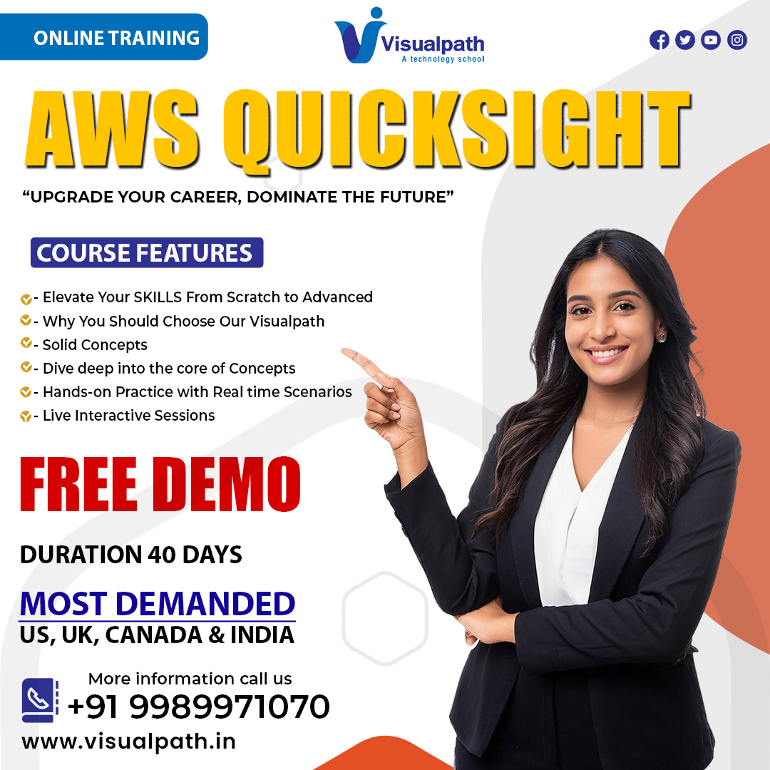 Visualpath offering AWS QuickSight Online Training with real-time expert instructors and hands-on projects. Our Amazon QuickSight Course Online from industry experts and gain experience We provide to individuals globally in the USA, UK, etc. To schedule a demo, call +91-9989971070.