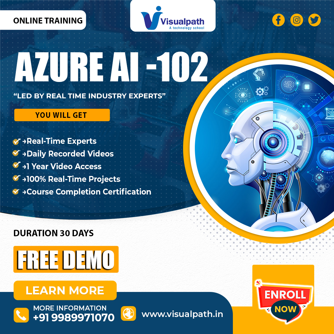 Join VisualPath’s Azure AI Engineer Training in Ameerpet and master AI skills with AI-102 Certification. Get expert guidance with hands-on experience and live projects. Enjoy flexible schedules with live and recorded sessions. Call +91-9989971070 today for a free demo.