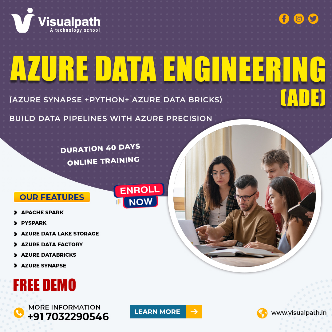Join VisualPath’s Azure Data Engineer Training Online and get hands-on experience with real-time projects. Learn from industry veterans with 16+ years of expertise through our Azure Data Engineering Certification program. Benefit from weekend batches, expert mentorship, and lifetime access to recordings. Call +91-7032290546 for a free demo and boost your career today.