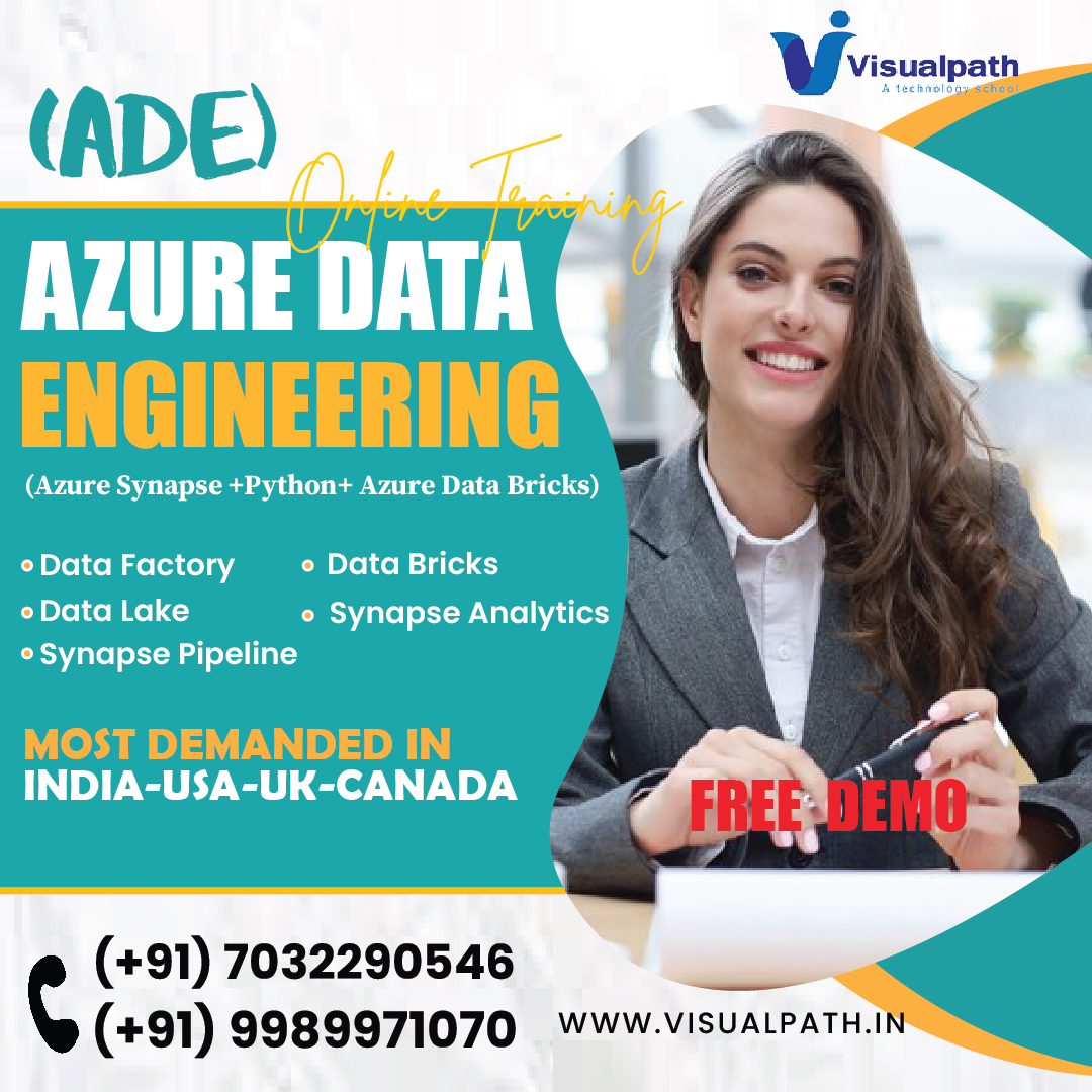 Visualpath is the Best Azure Data Engineering Training in Ameerpet by real-time experts for hands-on learning with Live Projects. Our Azure Data Engineer Training is available in Hyderabad. We provide to individuals globally in the USA, UK, Canada, etc. Contact at +91-9989971070.