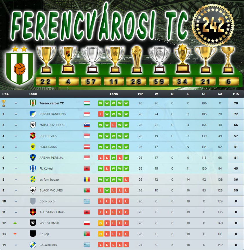 Bajnokság 117.Szezon Végeredmény (242.Kupa)