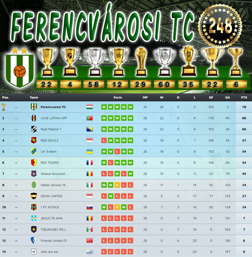 Bajnokság 118.Szezon Végeredmény (248.Kupa)