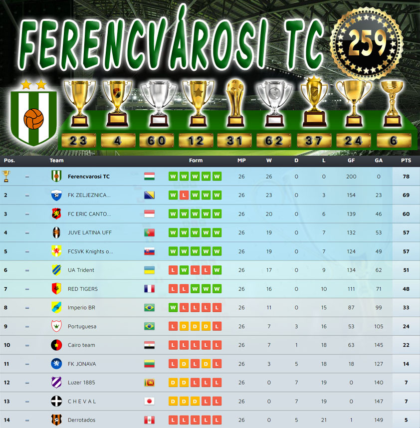 Bajnokság 120.Szezon Végeredmény (259.Kupa)