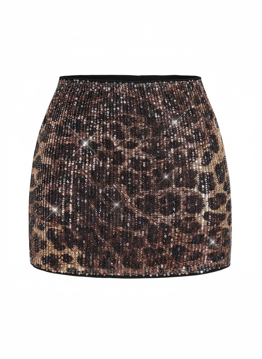 豹纹亮片裙白底