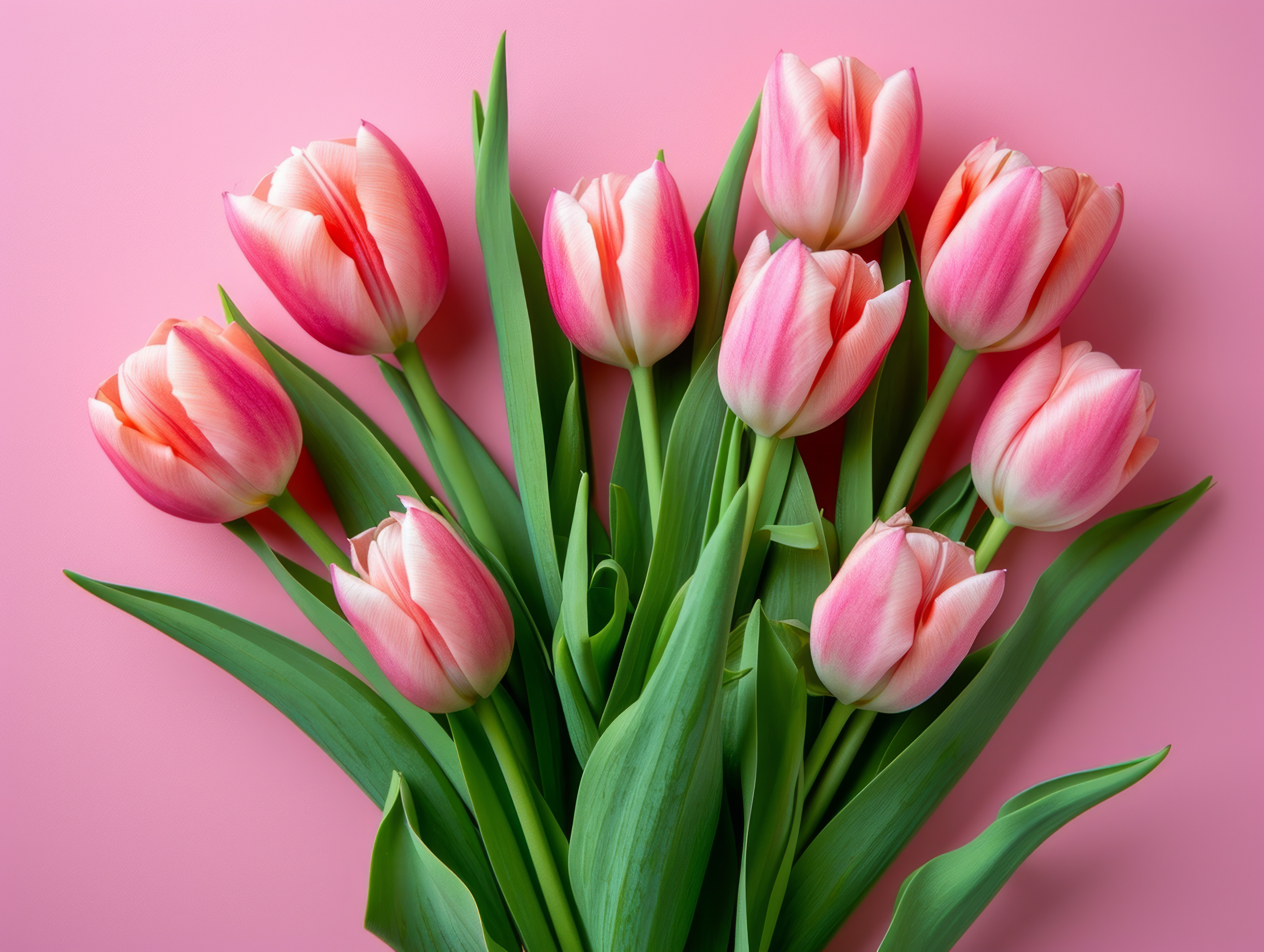 Beautiful composition spring flowers Bouquet of pink tulips flowers on pastel pink background Valent