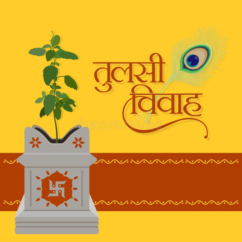 beautiful hindi typography tulsi vivah means basil plant wedding hindu festival editable illustratio